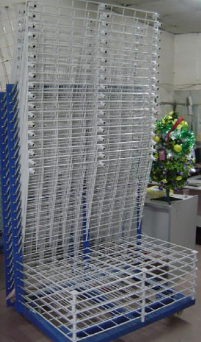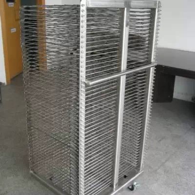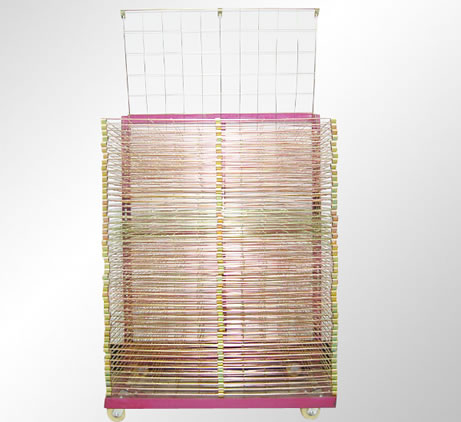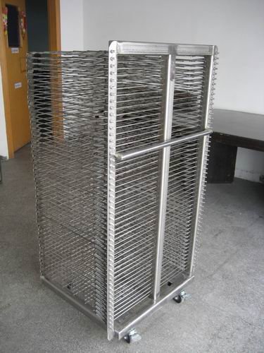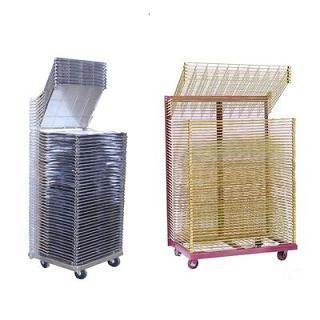 千層架,又叫絲印千層架、乾燥架、千層車、晾曬架、晾紙架、網架、層架臺車。適用于印刷、上膠、噴漆、上色,濺鍍後的晾乾置放器材;顒邮蕉鄬泳W格設計,置放空間大,操作方便,節省車間、庫房面積,并可適用於所放產品的常溫晾乾和進焗爐高溫烘烤。