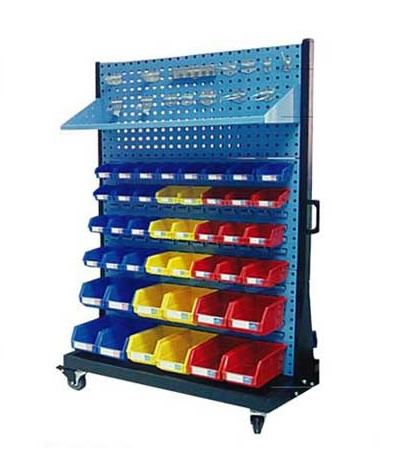 物料整理架物是以方孔掛板和百葉掛板為主要部件,結合背掛零件盒、掛鉤、棚板等多種配件使用。對您生產現場的小型少量多樣的工具、物料進行分類存放、方便搬運歸位、充分利用空間,整潔高效。
